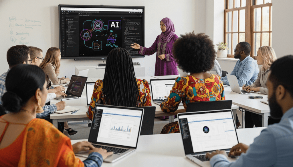 Beginner to executive tracks • Ethical AI training • Prompt mastery • Real-world applications